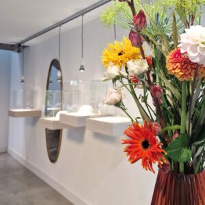 In het atelier werken we uitsluitend met hoogwaardige materialen zoals 18 karaat goud, zilver, natuurlijke diamanten & edelstenen en duurzame kwaliteit parels.